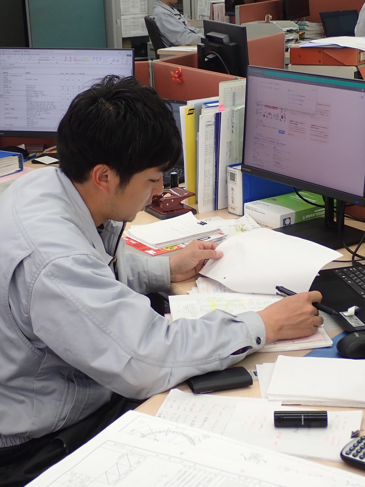 図面を読み解き、工程を想定して見積を作成する。正確さが求められる仕事なので、じっくりと数字や文字に向き合える方に向いています。